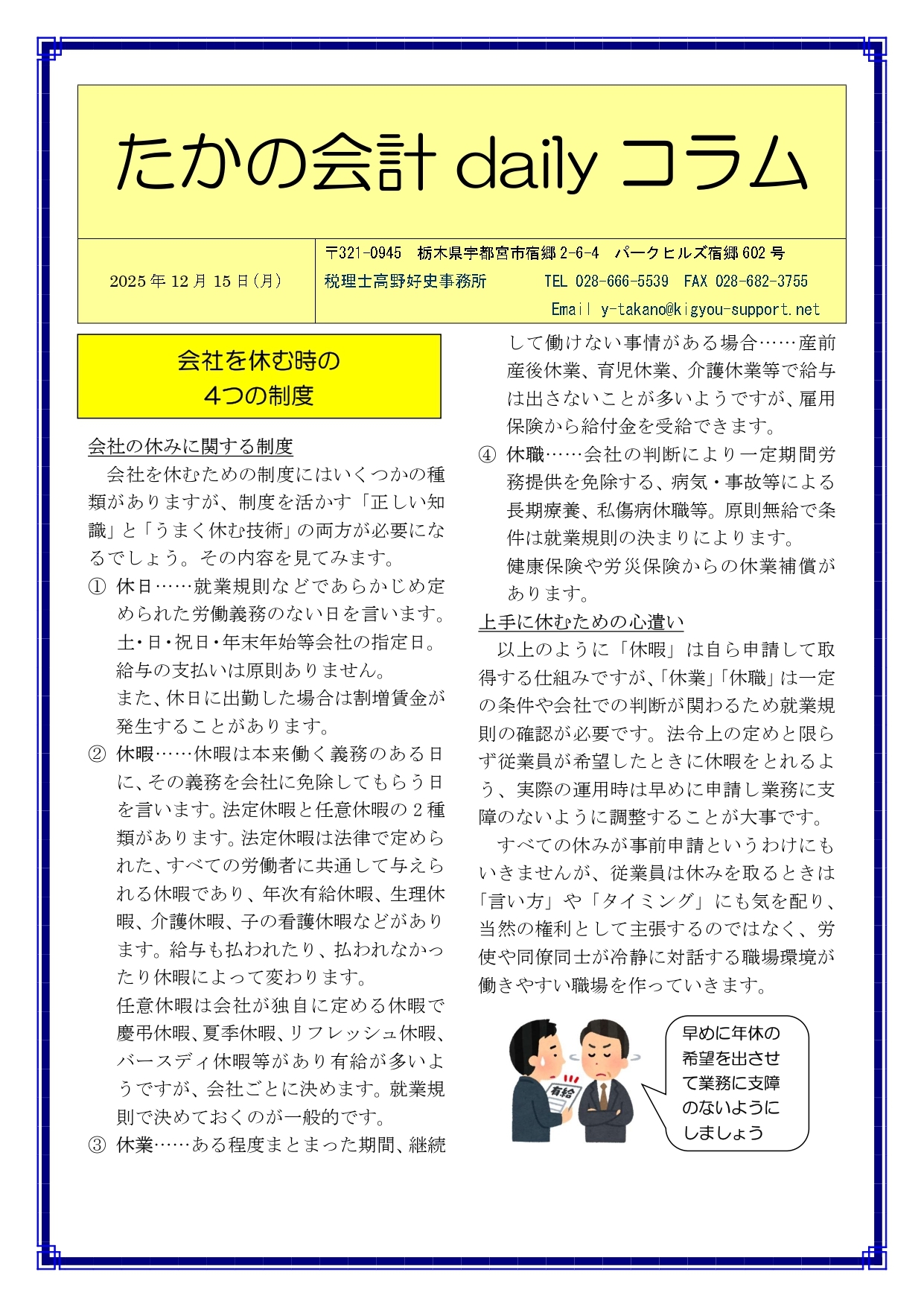 ※たかの会計Dairyコラムは、8月18日まで更新を休ませていただきます。